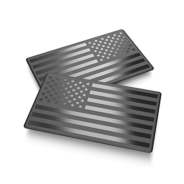 2 Pack Car American Flag Sticker, Black 3D US Decal for Vehicles, 5"x 3" Small USA Bumper Emblem Sticker Compatible with Jeep, Trucks, RV, SUV and More (One Left and One Right)