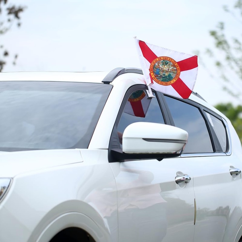 2 Pack Car Flags,Car Flag Florida State Flag Outdoor with State Flag and Car Flag Pole, Car Logo Window Clip Can be Clipped to Most Windows 14 inch Flag Pole and 16 x 10 inch Double Sided Flag.