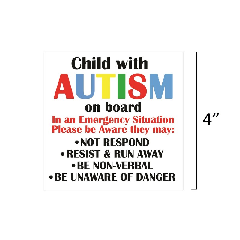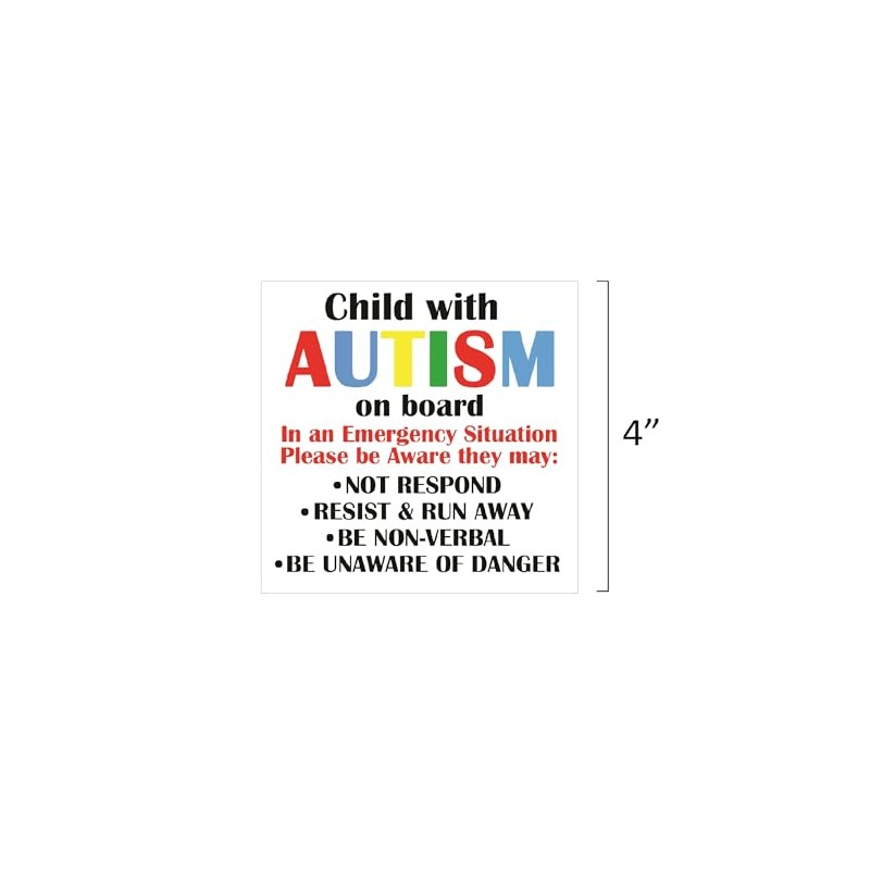 2 Pack Child with Autism Medical Alert Stickers – 4" Vinyl Car Decals for Window or Bumper – Alert Emergency Responders – Waterproof