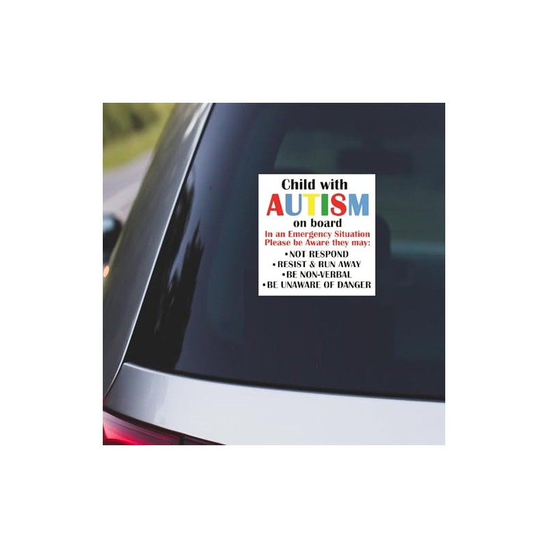 • 🔹 Child with Autism Vehicle Medical Alert Stickers – Designed specifically for cars, these decals help emergency responders quickly identify that a child with autism may be present, improving safety and care during urgent situations.