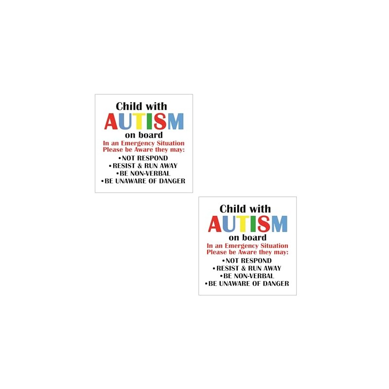2 Pack Child with Autism Medical Alert Stickers – 4" Vinyl Car Decals for Win...