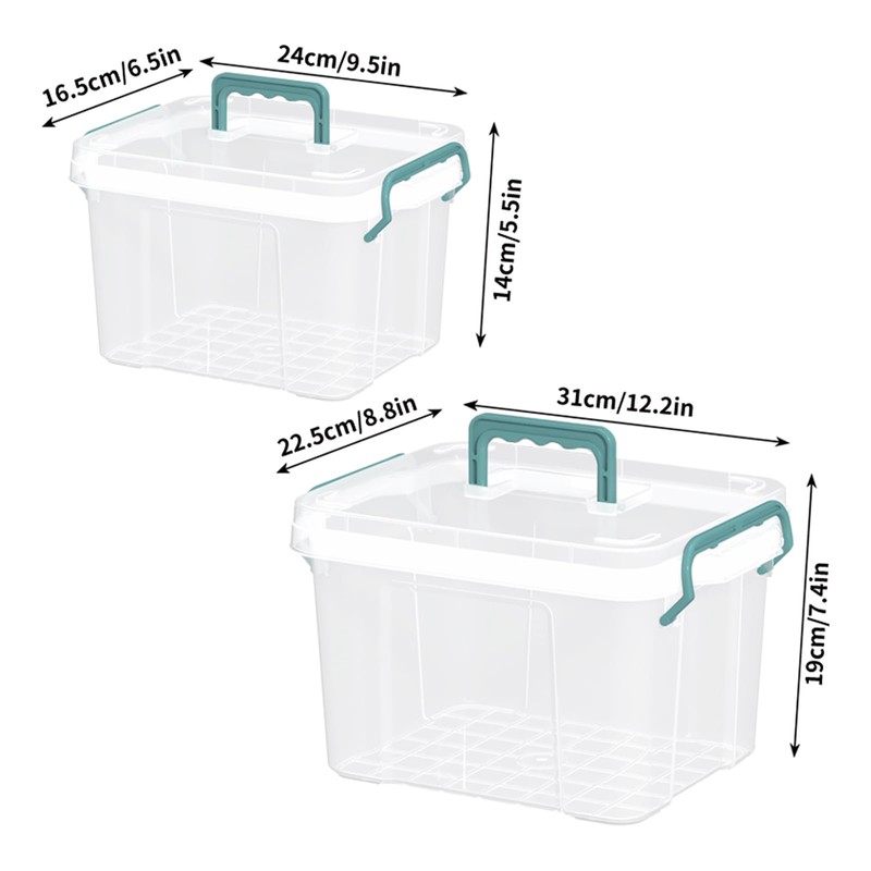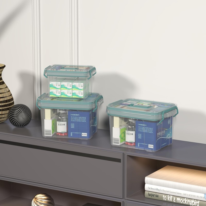 2-Pack Clear Storage Box Container,Clear First Aid Box Organizer with Compartments, Plastic Family Medical Supplies Storage Box