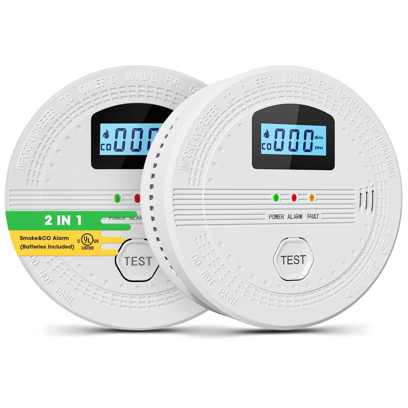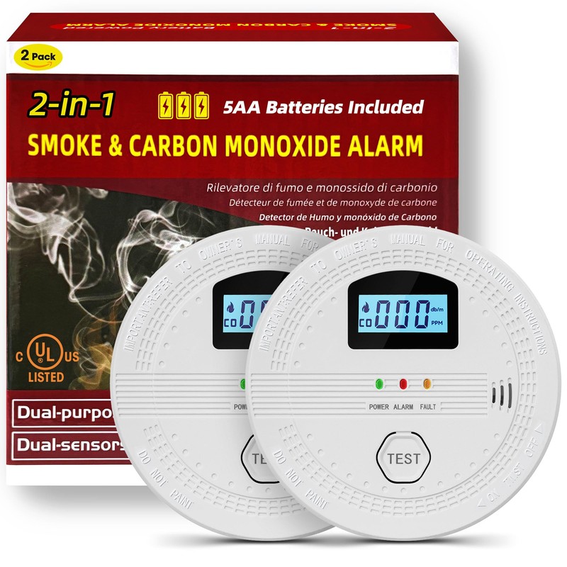 2 Pack Combination Smoke Detector and Carbon Monoxide Detectors with LED Display (3×5AA Batteries Included)