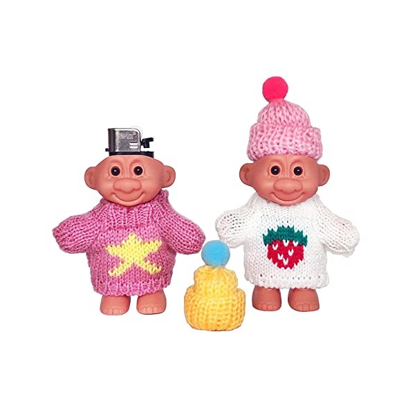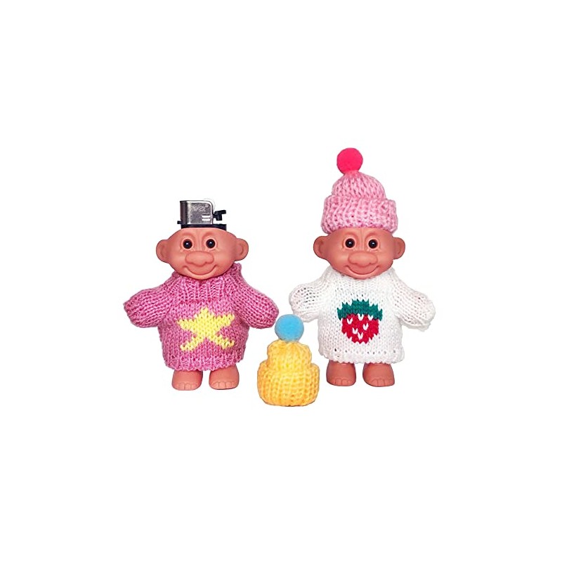 2 Pack Cute Troll Dolls Lighter Case Silicone Funny Mini Dolls Lighter Sleeve with Sweater &Hat for 3.2in Regular Lighter (Lighter not Included) (Pink & White)