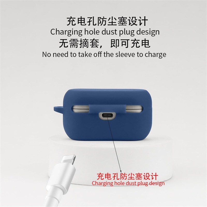 - The silicone case has a cutout in the bottom that allows you to charge the headset without removing the cover