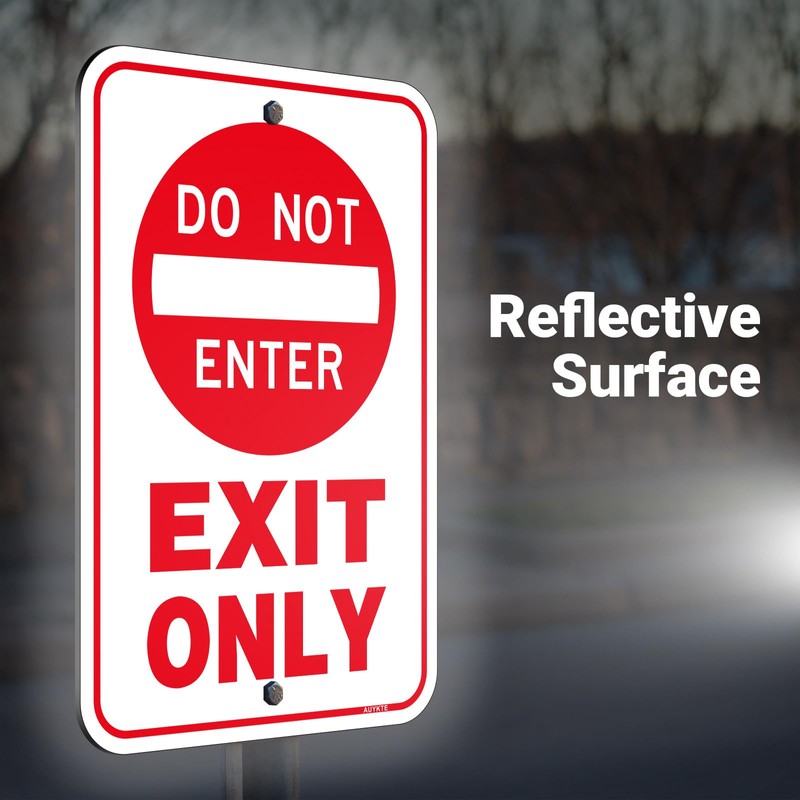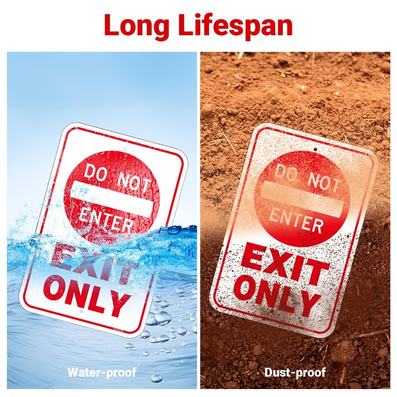 - High Contrast Graphics and Colors: The unique design, The clear lettering "Exit Only Do Not Enter" easy to read from a distance. High-quality printing, and bright color contrasts will catch the eye of anyone. There is a protective film on the sign to prevent it from being scratched, please remove it before use.