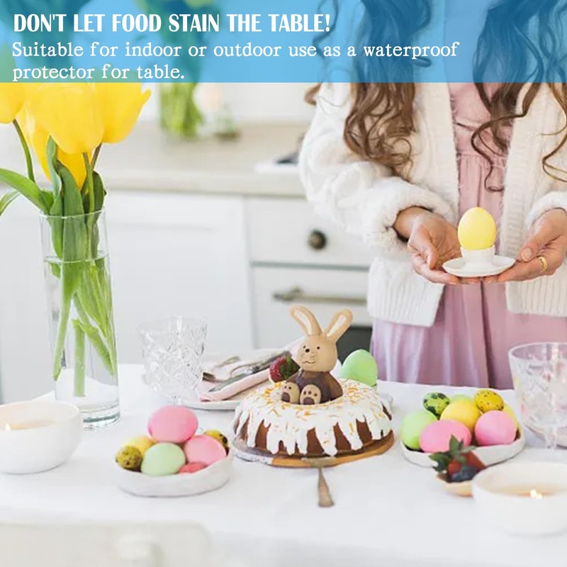 - Premium Plastic Material: Crafted from high-quality, durable plastic, our tablecloth is stain-resistant and waterproof. This dual protection safeguards the table against spills and stains, ensuring a mess-free and enjoyable dining experience