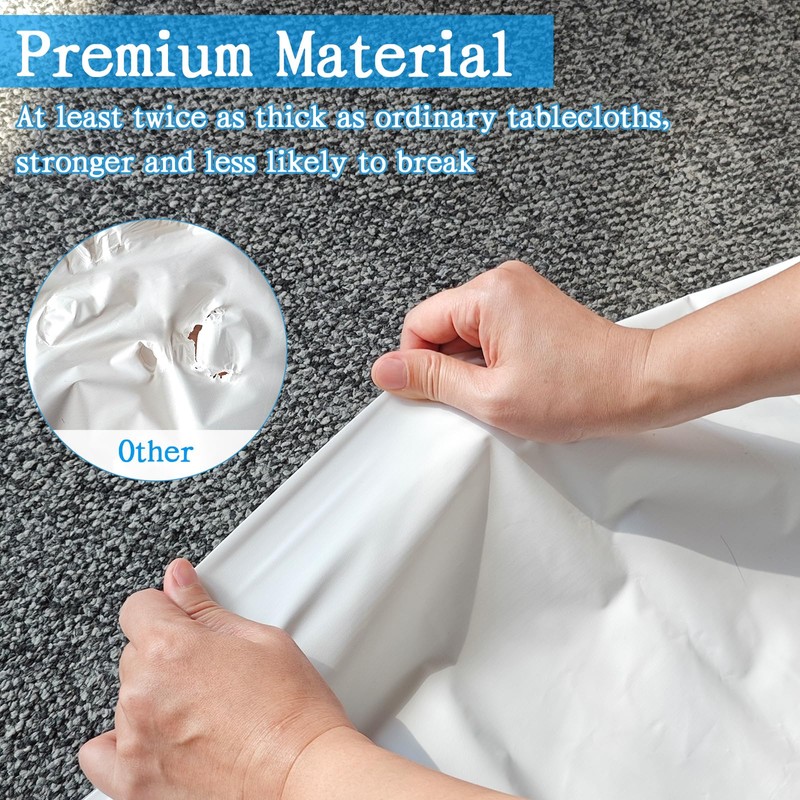 - Package Include: This 2 pack of 54 X 108 in Rectangle White plastic tablecloths will cover any table up to 8 feet. 40g per square meter, thick enough, strong and durable, convenient and easy to clean, freeing your hands during dinner parties