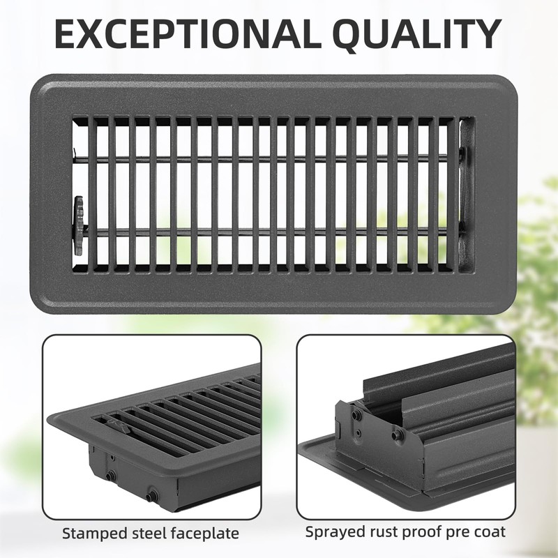 - Concise & Stylish Design: Elevate your space with our grey 4" x 10" floor register vent cover. Featuring clean lines and a refined finish, it blends effortlessly with carpet, tile, or hardwood flooring. Each pack includes 2 floor vent covers that combine elegance with practicality.