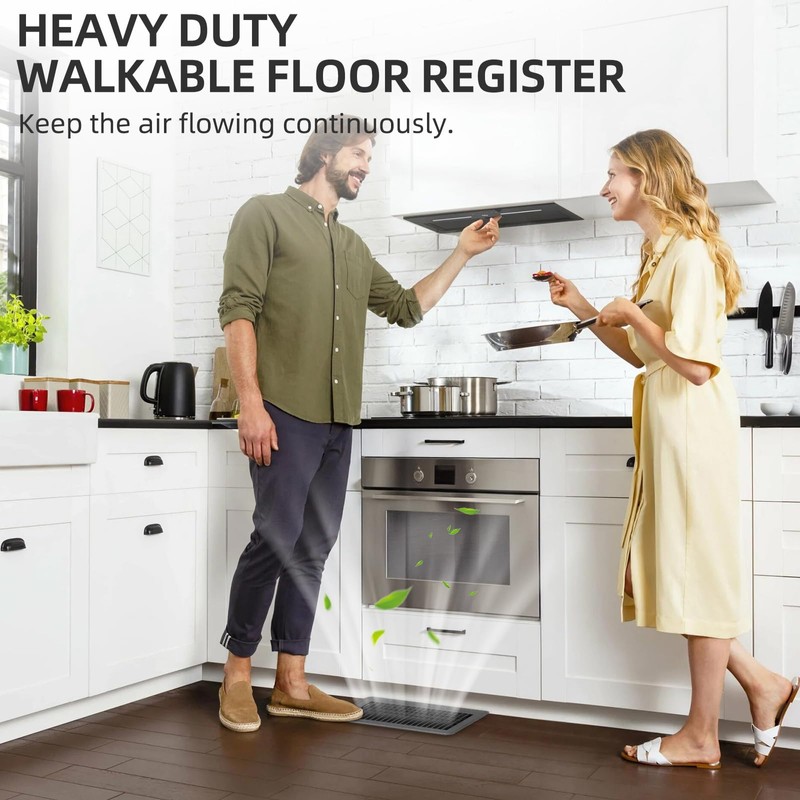 - Easy Installation with Secure Fit: The folded-edge design ensures a smooth, flush fit with your floor, reducing tripping hazards. No screws or tools needed—simply drop it in place. Be sure to measure your duct opening before ordering for best results.