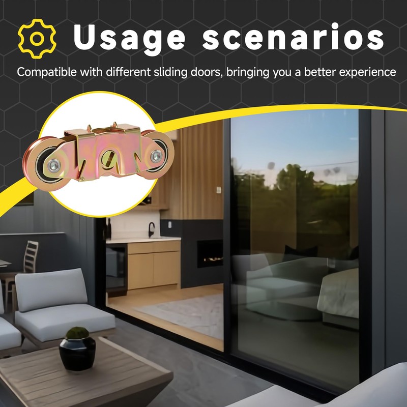 - Easy Installation: Gliding Door Roller is a push-in patio door roller assembly without screws. The shell has 2 top insertion points and 4 side locking tabs to fix it in place. Once the roller is halfway in, knock it in with a wooden block to ensure that the center screw is aligned with the adjustment hole