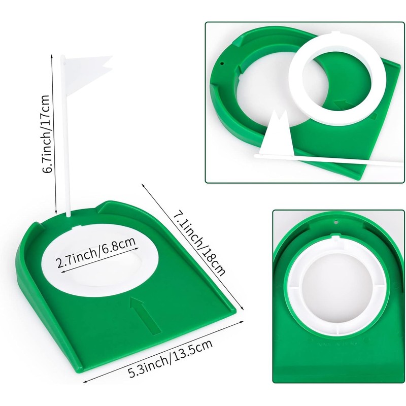 - Portable Practice: This 2-pack set includes two green putting cups with white flags for convenient golf practise at home, office, yard or lawn.