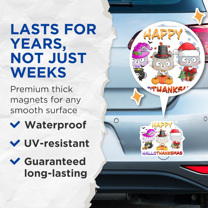 (2 Pack) Hallothanksmas Magnets - Holiday Cats - Halloween Thanksgiving Christmas Magnet- 5" On Longest Side - Sticks to Smooth Flat Surfaces - Made in USA - MAG11515