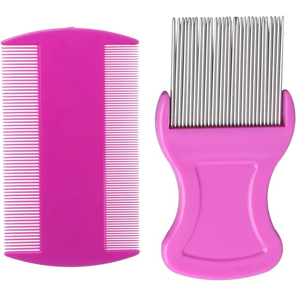 2 Pack Head Hair Comb Double Sided Hair Comb Removal Dandruff Comb With Metal Teeth (Pink, One Size)