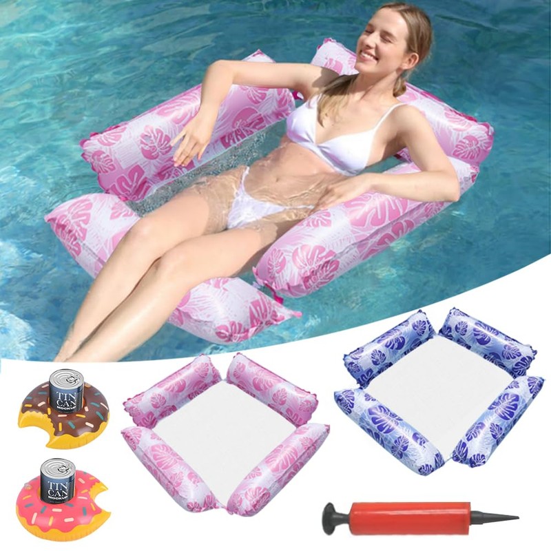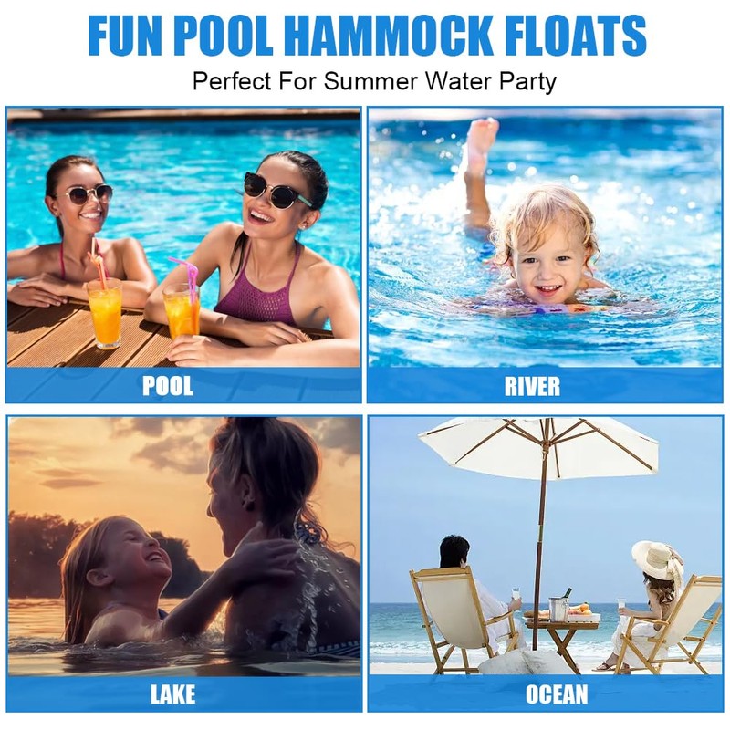 - 【Enjoy Leisure Time】These floats are great for travel and the pump comes along with it for convenient. Whether you're heading to the beach, pool or planning a vacation, our inflatable floating hammocks are your best choice for summer. They are a great helper for enjoying your time at the beach, lake, river or swimming pool. In the hot summer, a water hammock is the best gift for playing with friends, family, and colleagues.