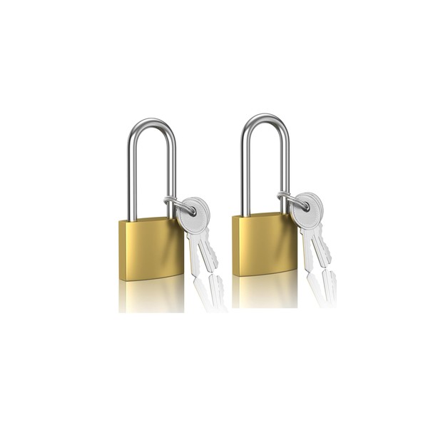 2 Pack Key Locks(keyed Alike), Shackle Length 2.63in, Padlock with Keys, Long Shackle Padlocks with Keys, Gym Locker Padlocks, High Security Padlock, for Indoor, Gate, Garage