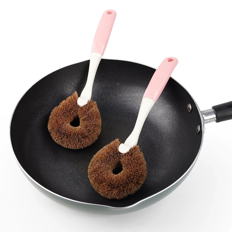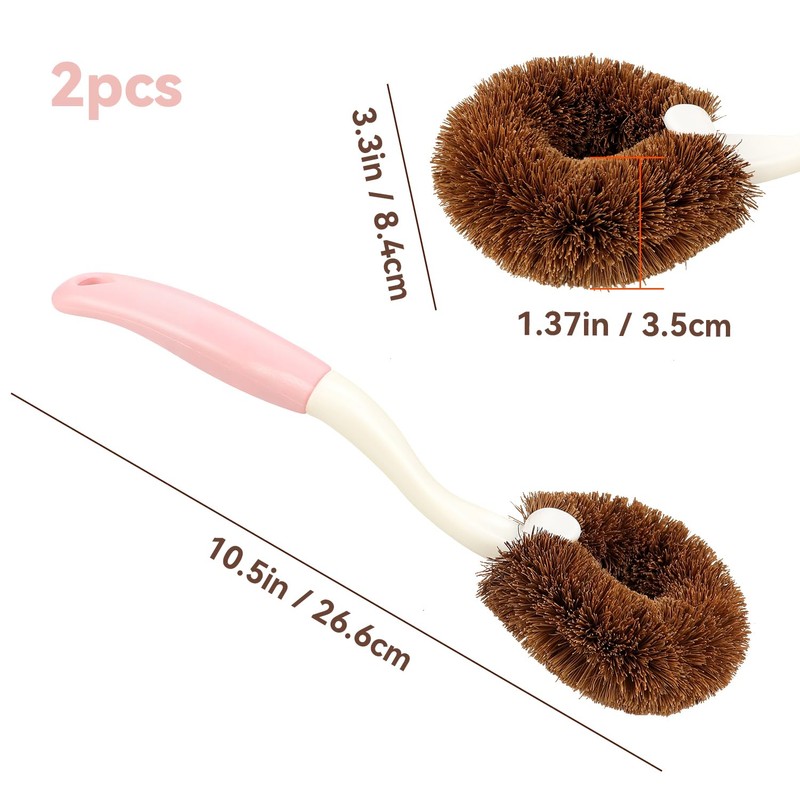 2 Pack Kitchen Scrub Brushes for Cleaning Dish Brush with Handle for Pans, Pots, Kitchen Sink Cleaning Scrub Brushes (Coconut Fiber)