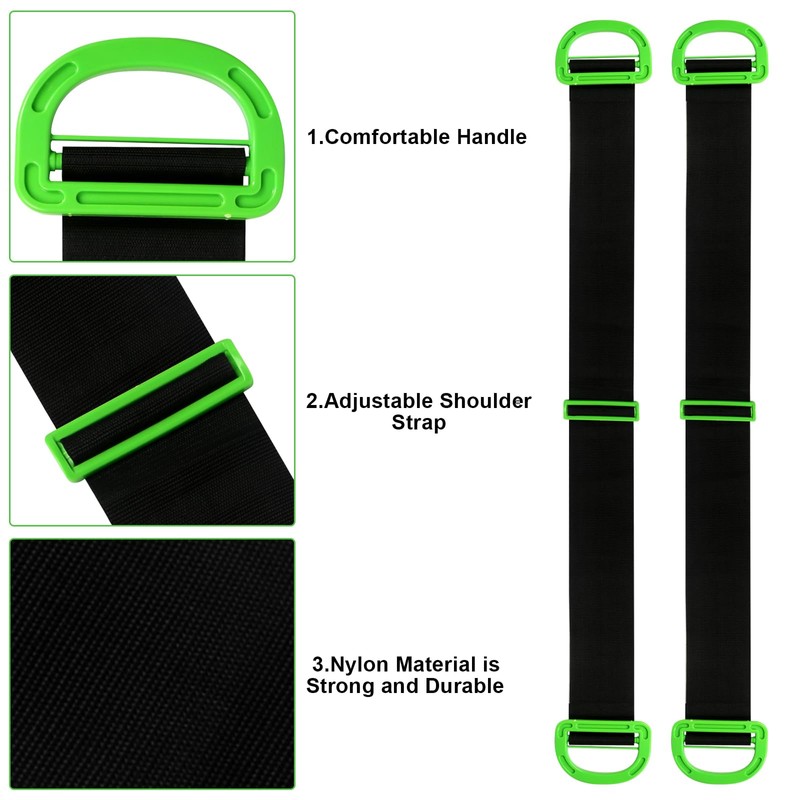 - 【High Quality Carrying Straps】The carring straps is made of nylon and polyester which is sturdy and durable. The maximum load of two straps is 200 kg, which can avoid breakage and protect your furniture or items from damaging during the process of moving.
