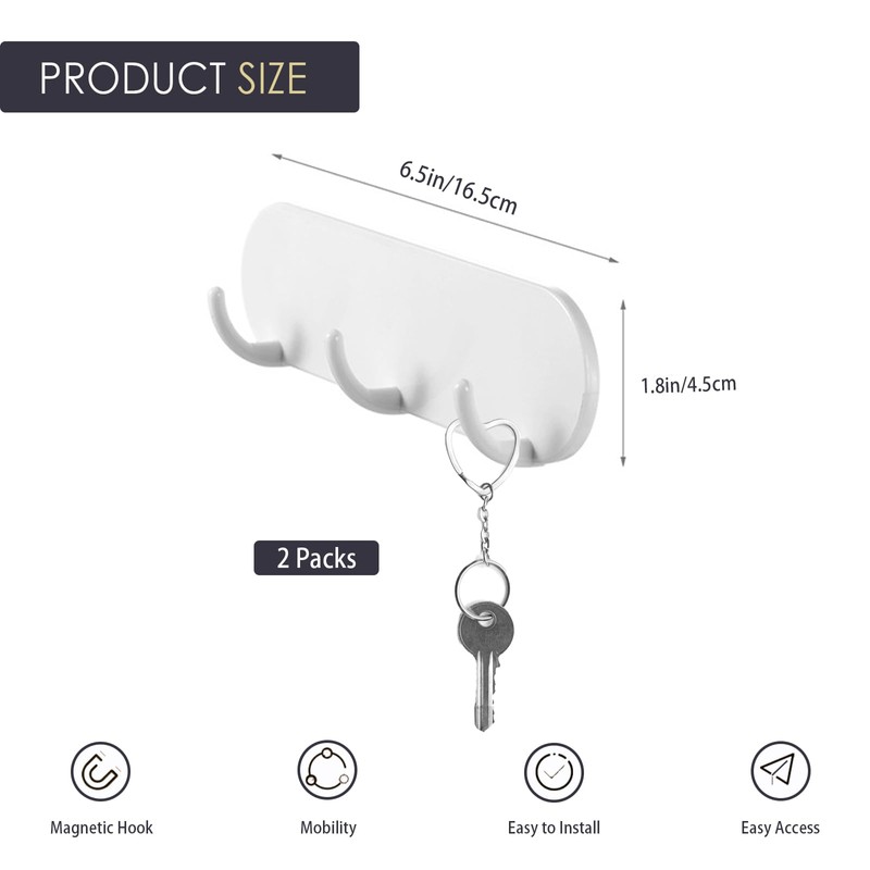 - Multifunctional Magnetic Key Hook: Ideal for organizing spaces like laundry rooms, garages, refrigerators, tool sheds, and lockers. Perfect for hanging small items such as keys, towels, hats, umbrellas, ropes, hair ties, hair dryers, and curling irons.