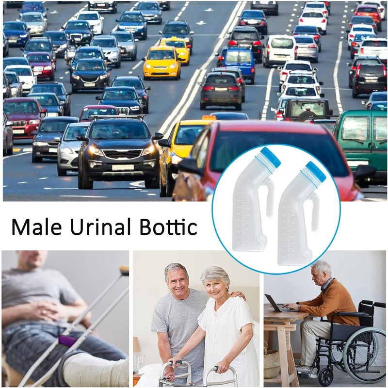2 Pack Male Urinal Bottle with Glow in The Dark Lid,32oz/1000mL Plastic Mens ...