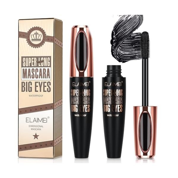 2 Pack Mascara Black Volume and Length, Natural Waterproof Smudge-Proof 4D Silk Fiber Lash Mascara Long-Lasting, Adds Length, Depth & Glamour Effortlessly