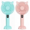 2 Pack Mini Portable Hand Held Fan, Night Light Handheld USB Rechargeable Fans with 5 Speeds, Cute Cat LED Digital Display Small Desktop Fans With Base for Home Office Bedroom Travel (2Pack-Pink+Blue)