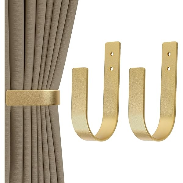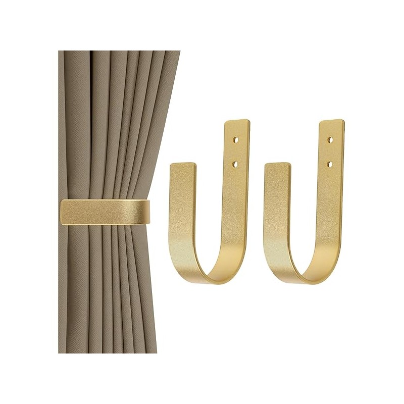 2 Pack Modern Curtain Holdbacks Curtain Tiebacks Wall Mount Solid Aluminum U Shaped Curtain Wall Hooks Curtain Pull Backs Curtain Holders Curtain Tie Backs for Curtain (2, Gold)