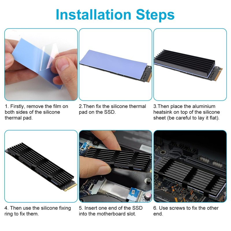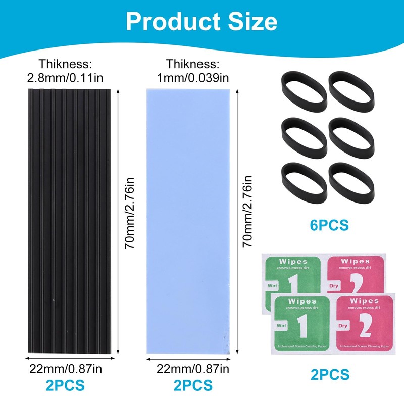 • Premium Nano Thermal Pad for Efficient Cooling: The nvme heatsink cooler included nano thermal pad is made from high-performance grease material, ensuring excellent heat transfer between the SSD and heatsink. Its soft, flexible texture conforms to uneven SSD surfaces, reducing thermal resistance without affecting the warranty label.
