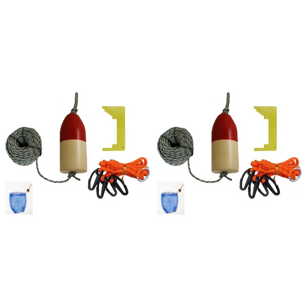 2-Pack of KUFA Crab Trap Accessory Kit (100' Lead Core Rope, Caliper,Harness,Bait Case & 14" Red/White Float) CAQ3x2