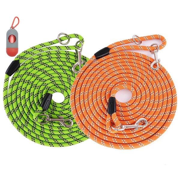 2 Pack Orange&Green 20FT Long Dog Leashes That Pull,Heavy Duty Dog Lead for Large Medium Small Dogs Outside Walking, Playing, Camping, or Yard