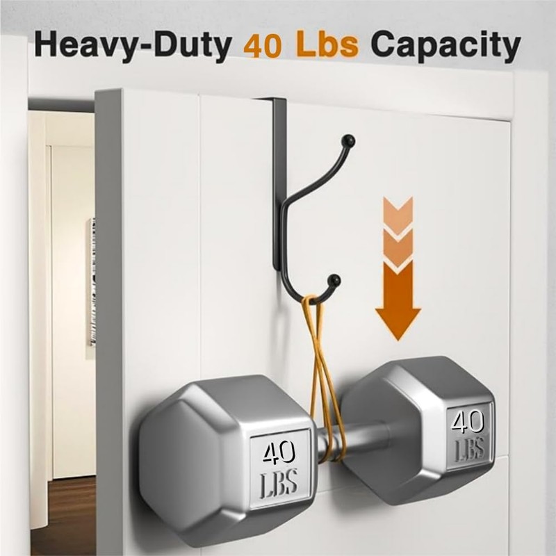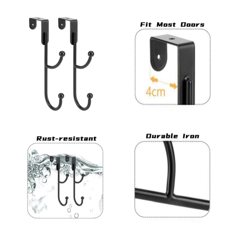 - 【Heavy Duty Strength】Made of durable iron, each hook can bear up to 80 lbs, stronger than common over-door hooks, ideal for securely hanging heavy items like coats, bags, and towels.