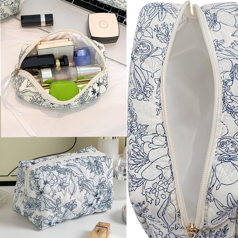 - Stylish Design:This large quilted cosmetic bag features a cute floral cotton print,perfect for adding a touch of elegance to your makeup routine;With ample room for all your cosmetics and toiletries, this makeup organizer pouch ensures you can keep everything neatly organized while travelling