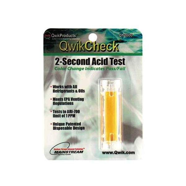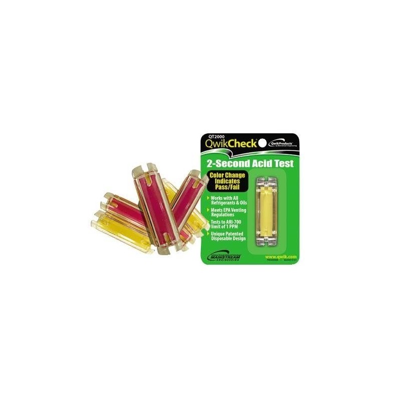 Specifications: Two Second Acid Test Kit , Color Change Indicates Pass/Fail , Tests for Inorganic Acids to the ARI-700 limit of 1ppm , Works with All Refrigerants & Oils , Meets EPA Venting Regulations