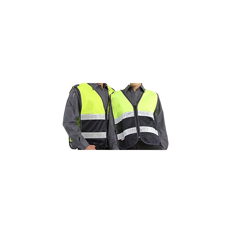 - The vertical fluorescent banding and reflective strips provide good visibility to reduce the risk of accidents.