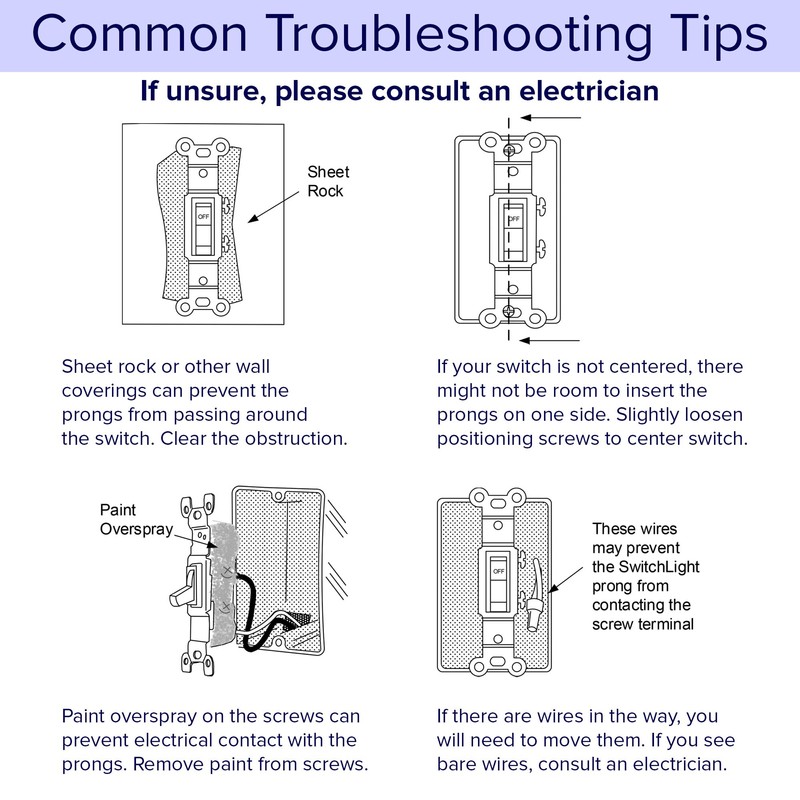 • Before You Buy - The SwitchLight requires your light switch to have 2 side screw terminals in order for the prongs to draw power. Check your light switch for those screws. Use the 2nd image for reference.