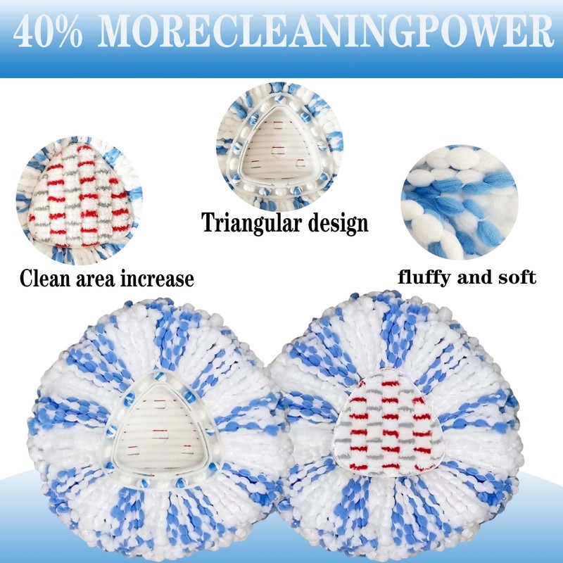 2 Pack Spin Mop Replacement Head - 40% More Cleaning Power,Mop Refill Compatible with Oceda Triangle Swivel Mops Microfiber Swivel Mop Refill,Deep Clean,Machine Washable and Easy to Replace
