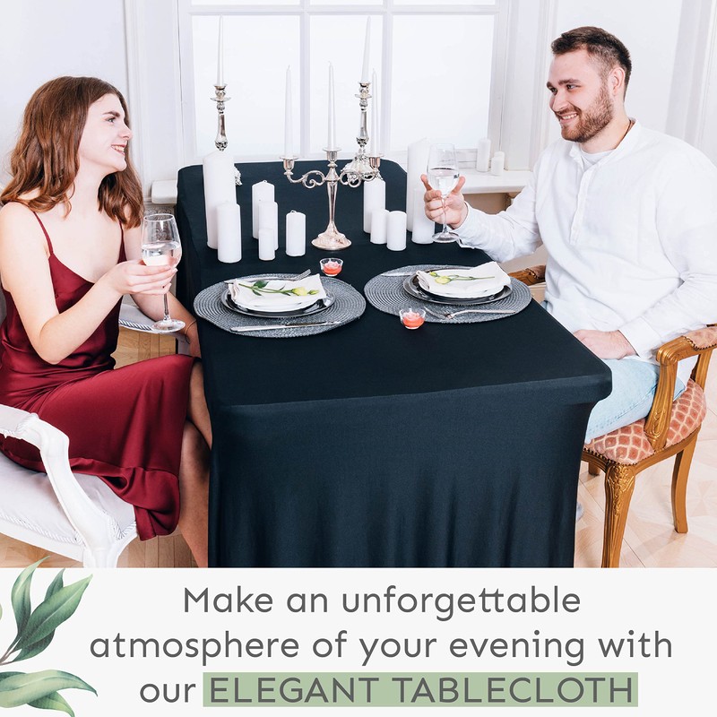 The blend of polyester and spandex material will not only spruce your Party tables up, but is sturdy and durable enough to withstand the heavy duty usage during outdoor carnivals, culinary events, weddings, as well as indoor tea parties, birthdays, and holiday dinners. Fitted spandex tablecloths are made to allow easy access to catering equipment stored beneath the table.