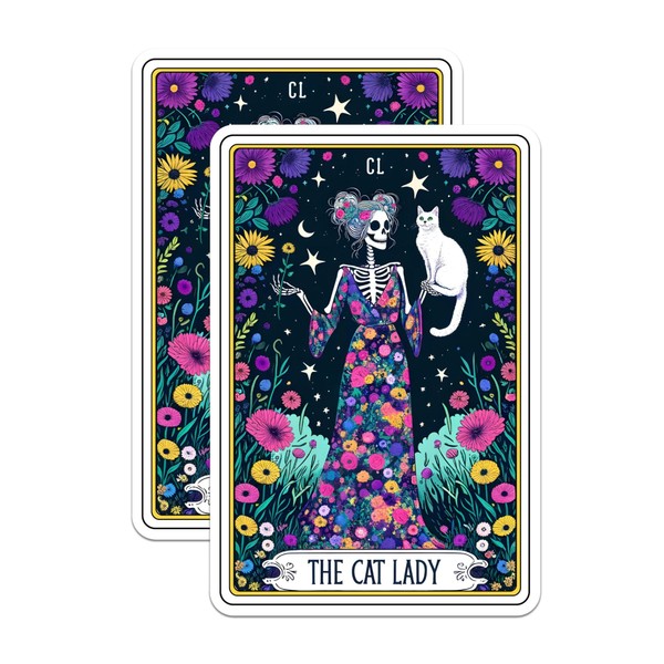 (2 Pack) The Cat Lady Tarot Card Stickers - Funny Crazy Cat Lady Cat Lover - 5 Inches On Longest Side - Premium Vinyl - for Cars, Trucks, Skateboards, Laptops - Made in USA - BMCS0504