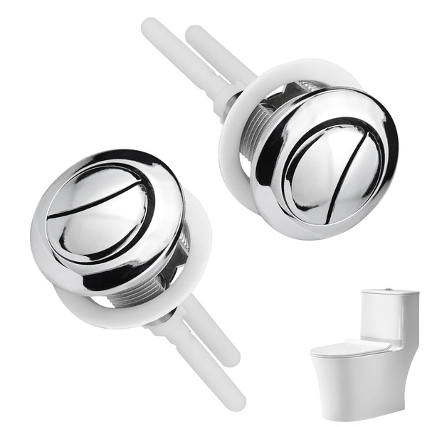 2 Pack Toilet Flush Button Replacement - 48 mm Universal Dual Push Toilet Flush System Replacement Parts for Toilets Cistern - Compatible with Standard and One-Piece Toilets