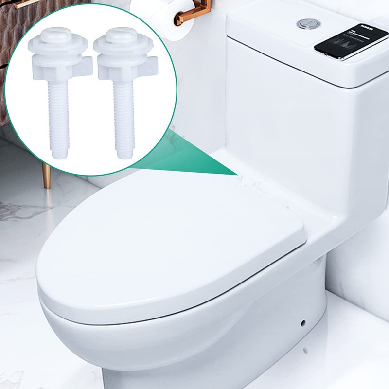 - Package includes: The toilet seat screws kits include 2 pieces 2.5 inch length hinge bolt screws, 2 piece of self-locking nut and 2 pieces of 1.1 inch diameter washers. The white color have a clean and neat appearance, matches most toilets seat color.