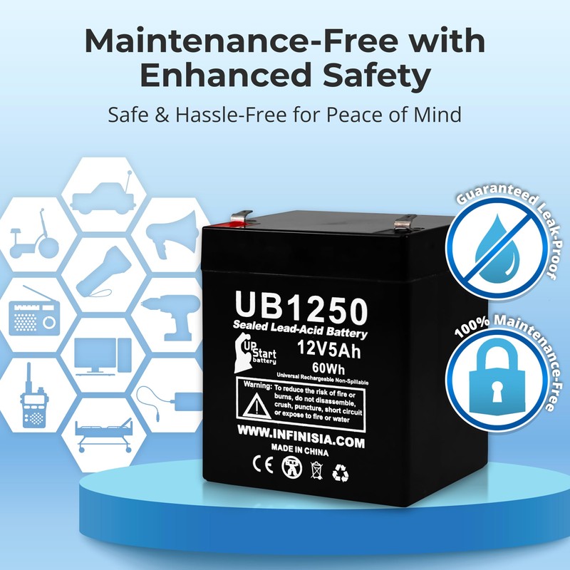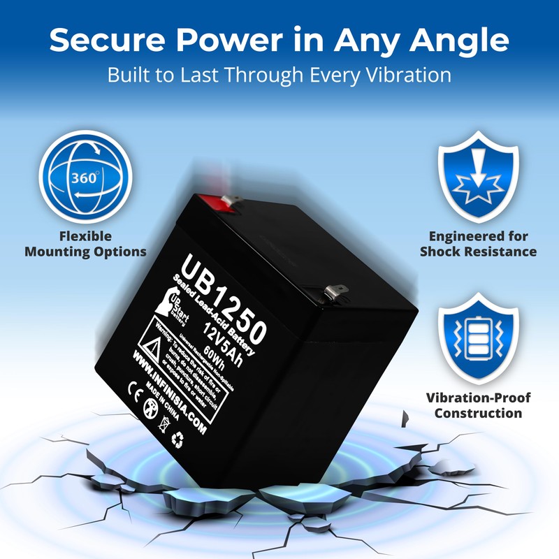 • π‹πŽππ†-π‹π€π’π“πˆππ† ππŽπ–π„π‘ & π‘π„π‹πˆπ€ππ‹π„ ππ„π‘π…πŽπ‘πŒπ€ππ‚π„ – This 12V 5Ah high-capacity sealed lead-acid battery provides extended runtime and consistent energy output, making it ideal for alarm systems, emergency lighting, backup power, electric ride-ons, and more. A dependable replacement for the Power Patrol SEC1055 12V 5Ah battery, it's designed for reliable starts and longer use. Compatible with SEC 1055 battery, SLA1055, BSL1050, BSL1055, PC1240, and BP512.