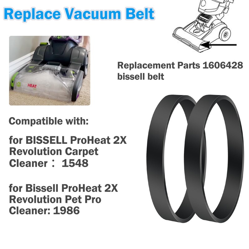 - Package included 2 pack vacuum belts replacement for Bissell ProHeat 2X Revolution Pet Cleaner, Vacuum Cleaner Belts Parts 1606428