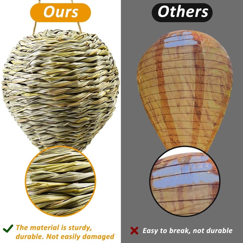 - Multiple Usage: You can hang this woven reed wasp nest decoy outdoors to keep them away from your home, like patio, farm, garden, orchard, yard and so on.