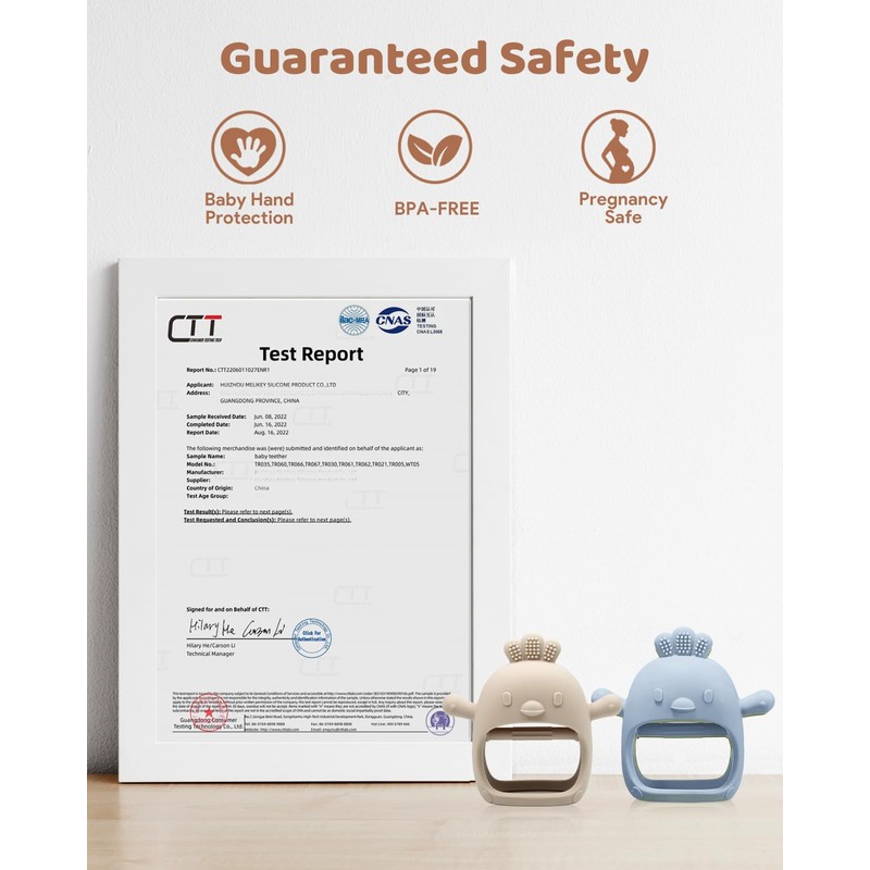 - 【Food Grade Soft Silicone】 Teethers are made of BPA free silicone with no small part to provide a strong, yet soft biting experience. The teething toy can be easily cleaned with a cloth, dishwasher and freezer safe. Our teethers exceed all government safety regulations and standards for parents' peace of mind.