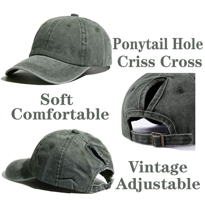 - 【Criss Cross Ponytail Hat】- This ponytail baseball cap is designed with newest criss cross band on the back brain spoon of the cap, which is perfect for pulling your messy bun or high ponytail, showing a sense of unique fashion to others. It is perfect companion for beach, pool, park, cycling, traveling, camping, golf, baseball games or any outdoor sports and activities.