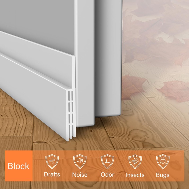 • 【PERFECT DESIGN 】- Door bottom sweep The door uses a triple design to effectively reduce noise and prevent dust from entering the door, and the door plug at the bottom of the door keeps the room quiet and clean. Self-adhesive door choke is ideal for covering gaps in indoor and outdoor doors, RV doors, shower rooms, baseboards, thresholds, Windows, garages, basements, furniture, etc
