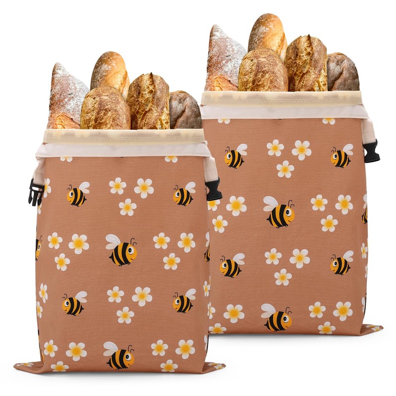 2 Packs Reusable Cotton Beeswax Bread Bags with Bee and Flower Patterns,Large Storage Containers to Keep Homemade Sourdough Fresh