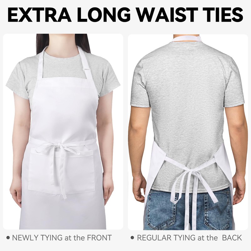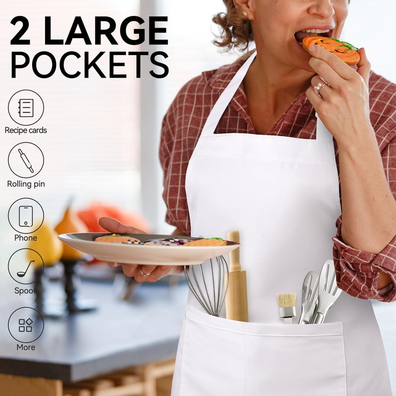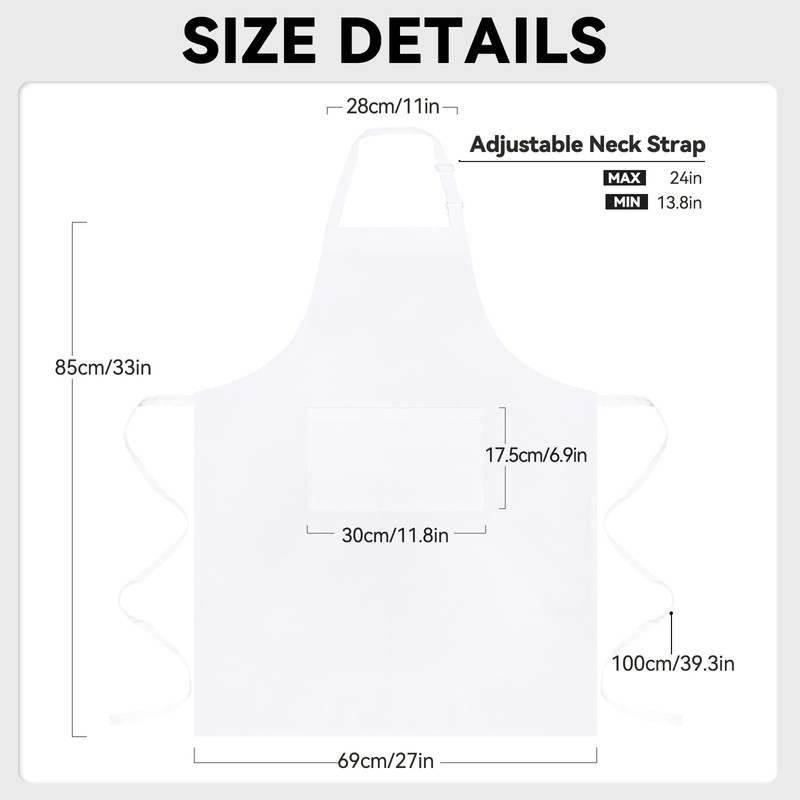- High Quality : Our high quality white apron with pockets ,which is Machine-washable, fade-proof, resists wrinkles, dry cleaning, tumble dry with low heat and shrinkage