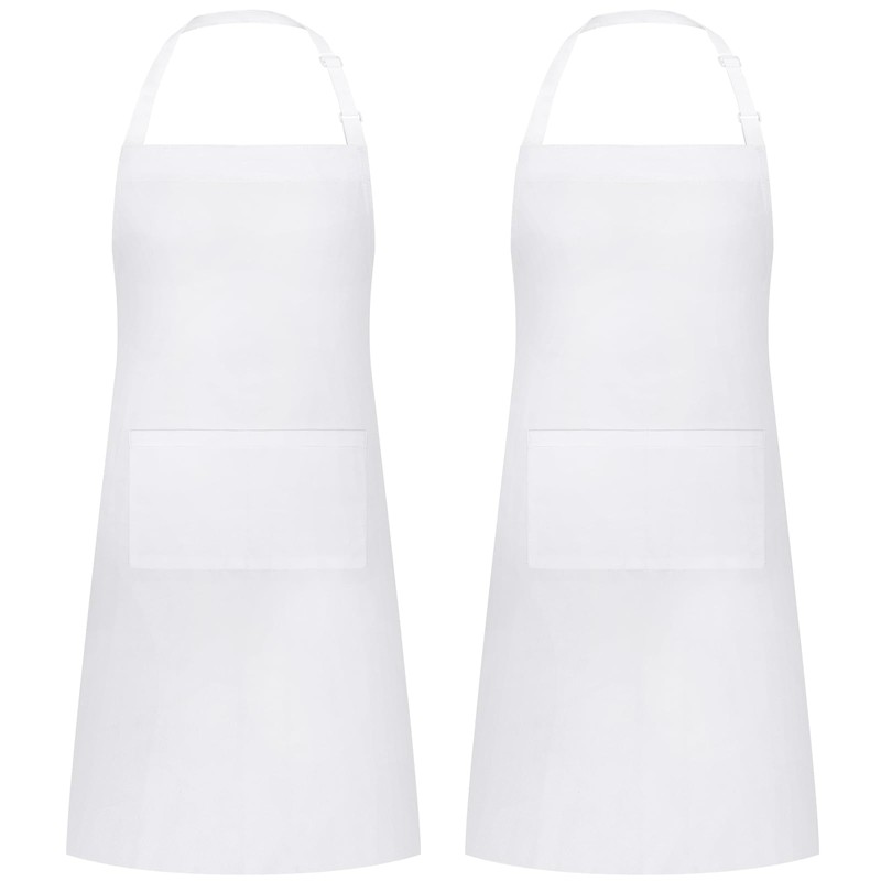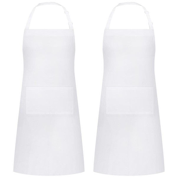 2 Packs White Apron, Adjustable Cooking Aprons, Waterdrop Resistant Kitchen Aprons for Women Men Chef, BBQ Drawing(White,2)