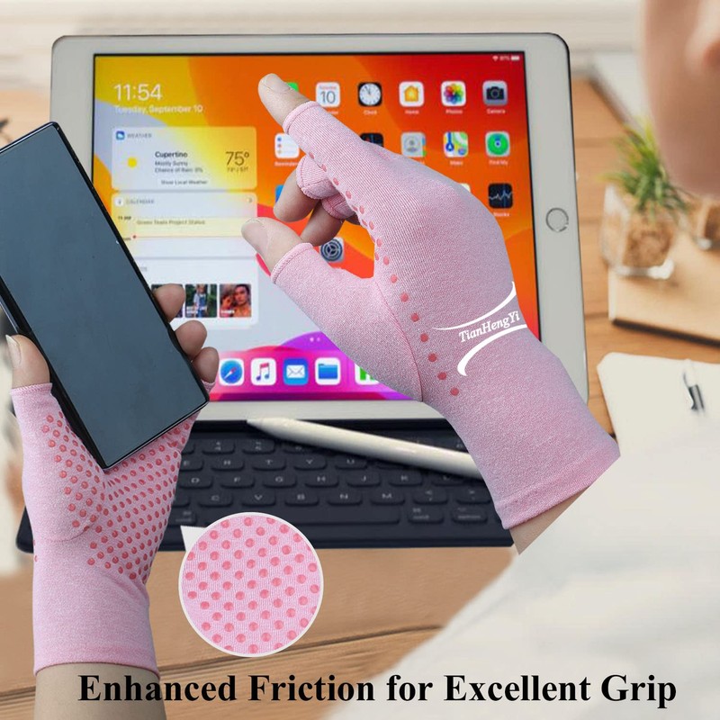- [Soothing Compression Therapy] - Embracing the natural shape of each hand, the Anti-slip Dots arthritis gloves are form-fitting, providing therapeutic compression to relieve pain, stiffness and inflammation. The soft compression gloves soothe sore, aching tendons, muscles and joints to effectively relieve arthritis pain by reducing stress on pressure points in the fingers, hands and wrists.